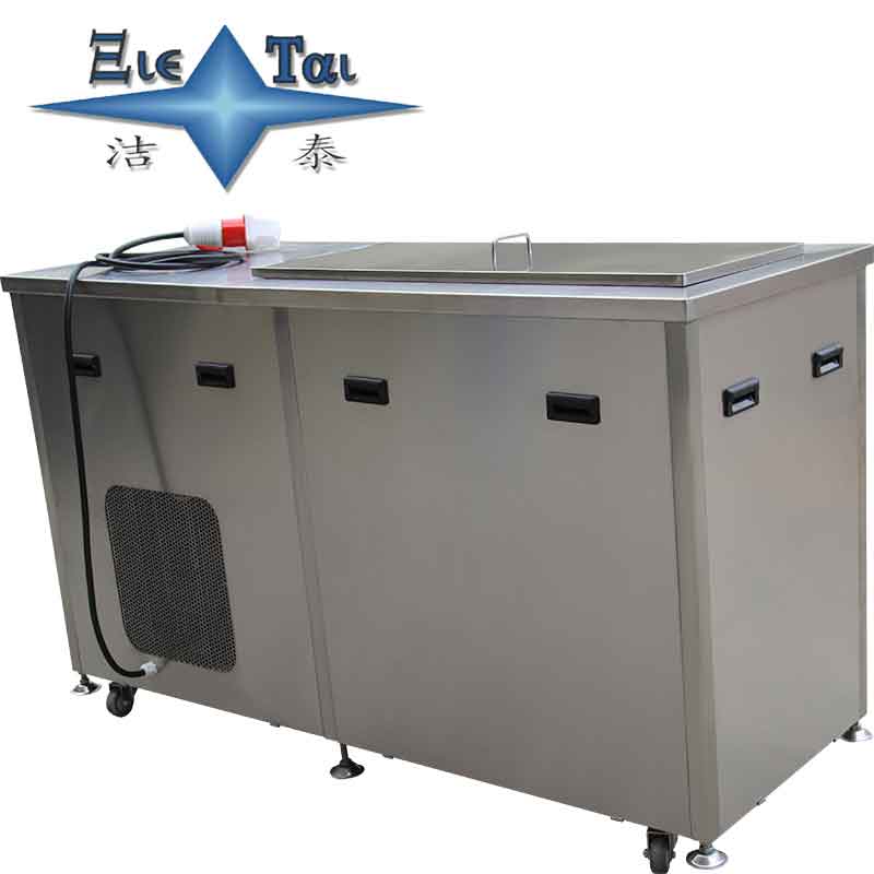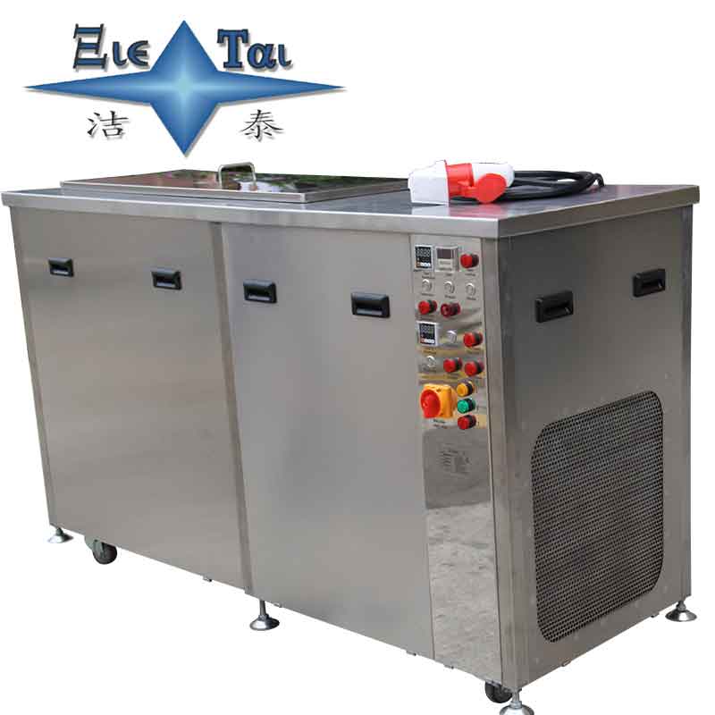 潔泰氣相制冷超聲波清洗機,該清洗機主要由超聲波發生器、換能器、粗洗槽、蒸餾回收槽、循環過濾系統、自動溫控加熱系統、油水分離器、冷凍系統、機架、控制面板、控制系統等組成。