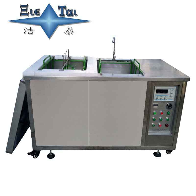 潔泰雙槽模具電解超聲波清洗機,電解超聲波系統是由超聲波發生系統,電解電路系統,循環過濾系統,專用模具電解清洗劑和水性防銹劑組成。藍鯨雙槽模具電解超聲波清洗機,第一槽為清洗槽、第二槽為漂洗槽。產品適用范圍:1、模具種類:注塑模具、儀表精密模具、連接器模具、精密密封件模具、沖壓模具、成型模具等。2、模具瓦斯氣殘留層,高溫形成的硫化物,防火塑膠殘留物,色粉殘留物,模具表面氧化物,以及各種模具的銹漬,油污等。